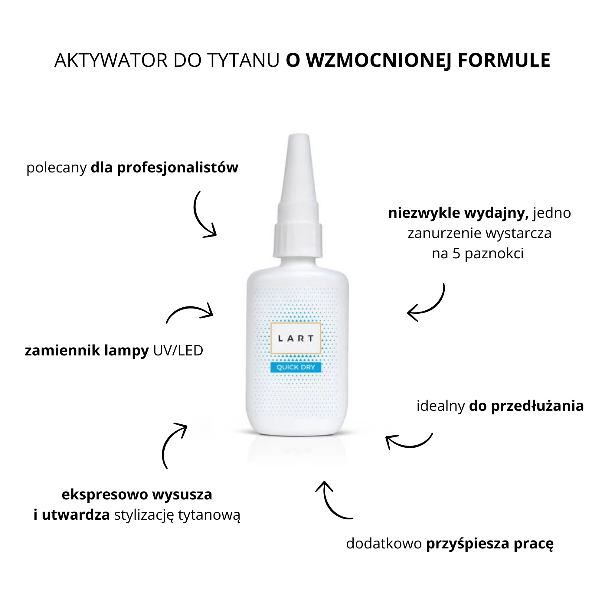 » Poznaj nasz ulepszony preparat QUICK DRY "lampę w płynie", który ekspresowo przyśpiesza wysychanie pudrów tytanowych podczas aplikacji i scala wszystkie warstwy stylizacji, dając jej tytanową moc! Uzupełnienie dla 4 małych buteleczek.