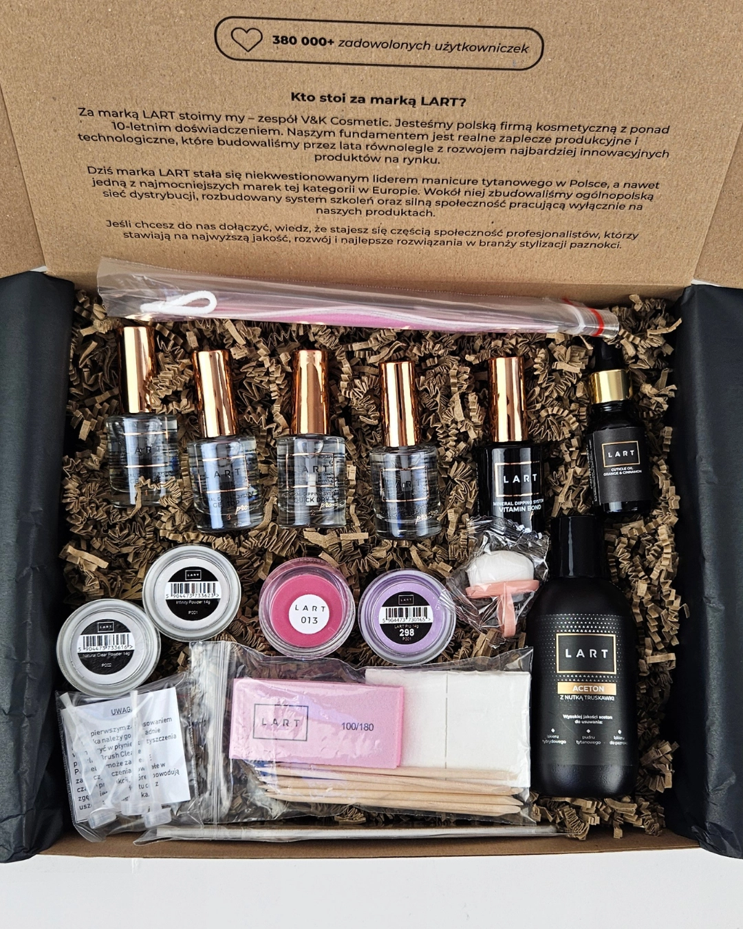 Zestaw HOME + DLA ZNISZCZONYCH PAZNOKCI zawiera nie tylko produkty, ale również wszystkie niezbędne akcesoria. Dzięki temu możesz od razu rozpocząć pracę!